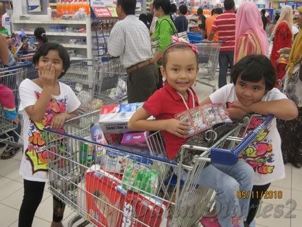 Seperti biasa..anak2 adalah peneman setia aku..dan mereka jugakla kawan baik aku..kemana saja aku pergi sekarang ni aku akan pastikan anak2 akan bersama...dan nak keluar sorang2 diri ni memang tak lama tak wujud dalam diri aku sekarang.hehhe aku lebih selesa bersama anak2..kalau suami ada kat umah..kami akan keluar bersama-sama..senantiasa bersama walau kemana jua.Bulan ni takdelah banyak sangat aku beli barang2 dapur ni..tapi dalam tak banyak pun ..bleh tahan gak la..nasib baik sebelum ni aku ada pergi beli sikit2 barang2 yg perlu.lauk pauk kali ni aku tak beli..coz masih banyak lagi dalam peti ais kat umah...habiskan mana2 yg ada dulu..tak perlu nak membazir....bila semuanya dah habis barulah aku beli..kalau dok lama2 dalam peti ais pun lauk tak best gak...